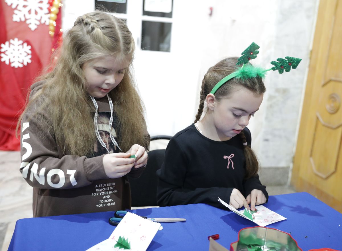 Перед тем, как перенестись в атмосферу Волшебной страны, маленькие зрители приняли участие в творческих мастер-классах – изготавливали новогодние открытки, расписывали гипсовые фигурки.