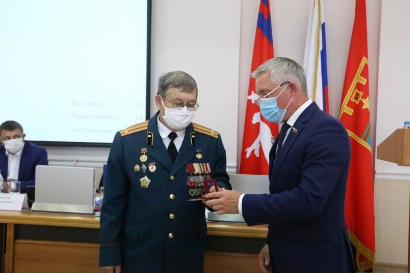 Перед началом сегодняшнего заседания председатель Волгоградской городской Думы Владлен Колесников вручил Почетный знак города-героя Волгограда «За верность Отечеству» участнику ликвидации последствий аварии на Чернобыльской АЭС Владимиру Любченко.