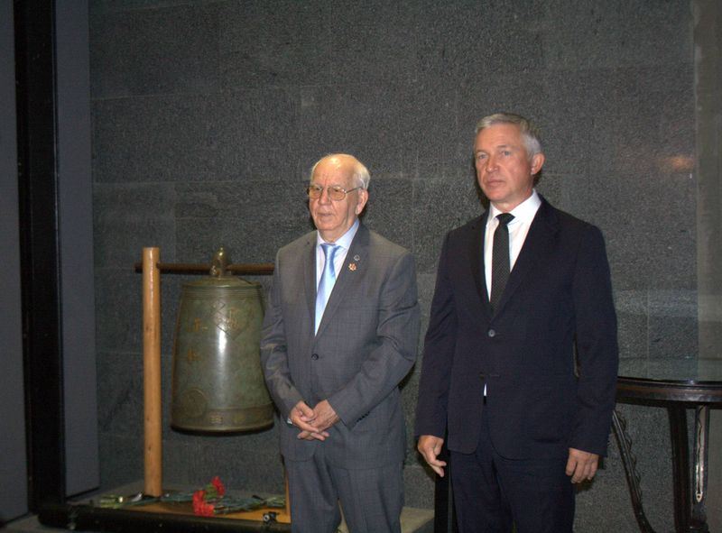 Каждый год 6 августа в музее-панораме «Сталинградская битва» проходит мемориальная церемония в память о мирных жителях города-побратима Хиросимы, погибших при атомной бомбардировке 1945 года. Сегодня, в 75-ю годовщину одного из самых страшных дней в истории человечества, Колокол мира, подаренный Волгограду властями Хиросимы, вновь прозвучал в городе-герое. В мероприятии приняли участие председатель Волгоградской городской Думы Владлен Колесников и председатель Волгоградского областного отделения Российского фонда мира, Почетный гражданин Волгограда и Хиросимы Юрий Староватых.