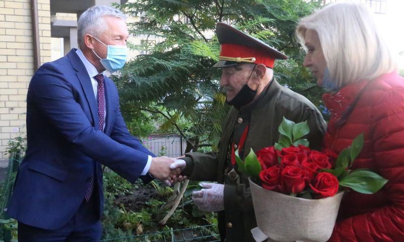 Председатель Волгоградской городской Думы Владлен Колесников вручил Евгению Фёдоровичу подарок и цветы от имени всех депутатов гордумы и пожелал крепкого здоровья и долгих лет жизни.