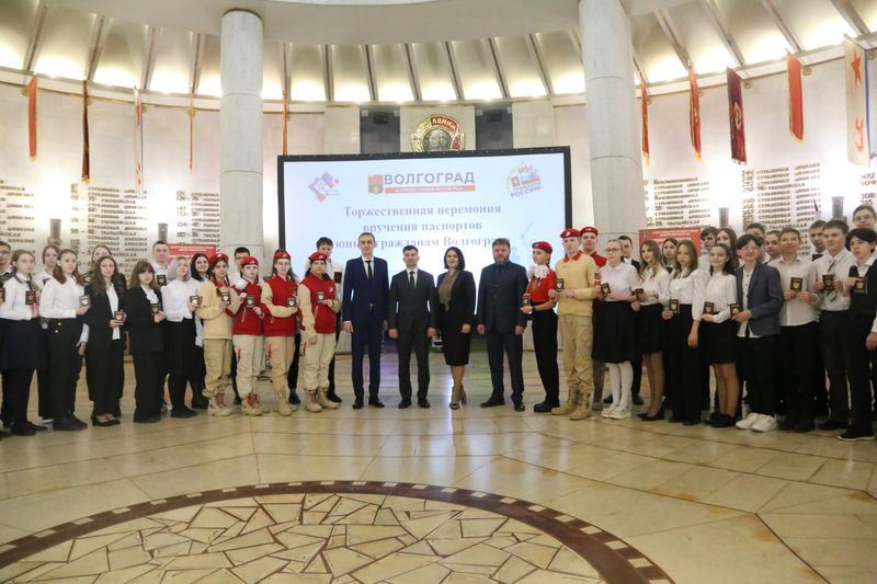 В торжественной обстановке главный документ гражданина России школьникам вручили директор музея-заповедника «Сталинградская битва» Алексей Дементьев, заместитель главы Волгограда Анна Кувычко, заместитель председателя Волгоградской городской Думы Геннадий Кузнецов, председатель комитета молодежной политики и туризма администрации Волгограда Александр Синютин.