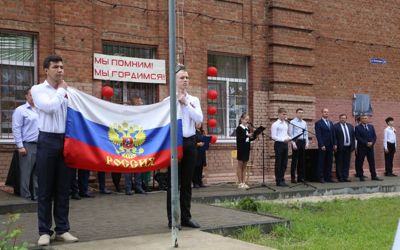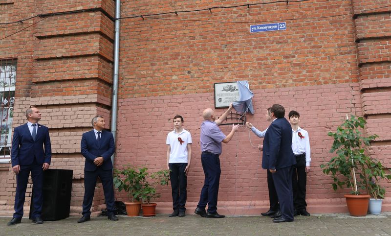 В торжественной церемонии открытия памятной доски, автором которой выступил волгоградский художник Дмитрий Зимин, приняли участие учащиеся школы, общественники, депутаты, представители муниципалитета и прокуратуры области. Школьники подняли государственный флаг России. К мемориальной доске возложили красные гвоздики.