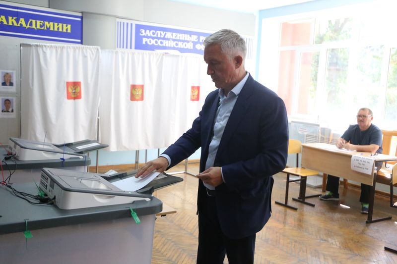 На избирательном участке, расположенном в Волгоградской академии физической культуры, проголосовал действующий спикер гордумы Владлен Колесников.