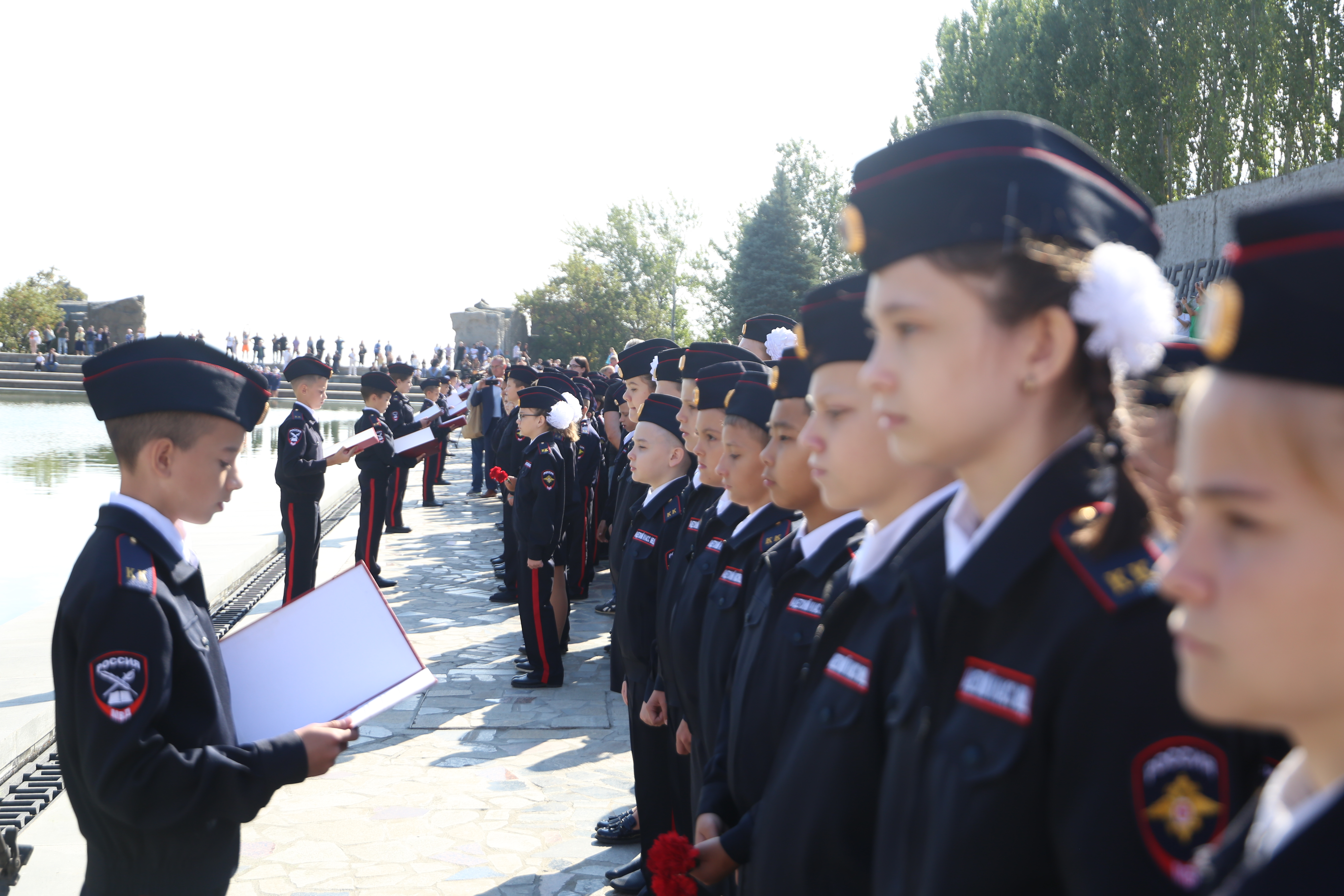 Сегодня на Мамаевом кургане состоялось торжественное посвящение в кадеты волгоградских школьников. Учащиеся специализированных кадетских классов муниципальных образовательных учреждений дали клятву с честью и достоинством носить это почетное звание. Ребят поздравили представители власти, силовых структур, общественники, депутаты.