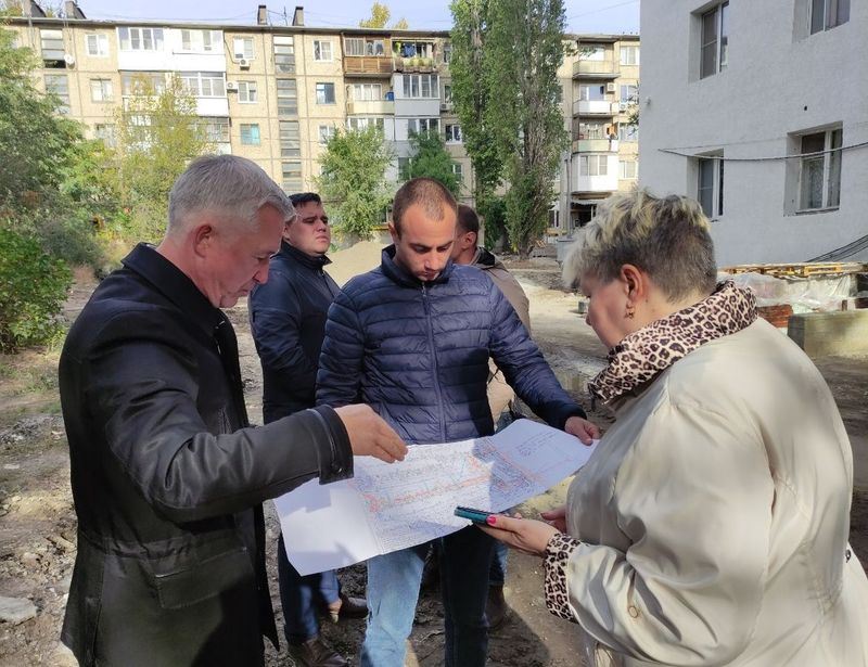 Сегодня председатель Волгоградской городской Думы Владлен Колесников и заместитель председателя комитета по жилищно-коммунальному, дорожному хозяйству и транспорту гордумы Дмитрий Никуйко, представители районной администрации и МУ «Комдорстрой» проинспектировали ход работ по благоустройству дворовой территории по ул. Еременко в Краснооктябрьском районе.