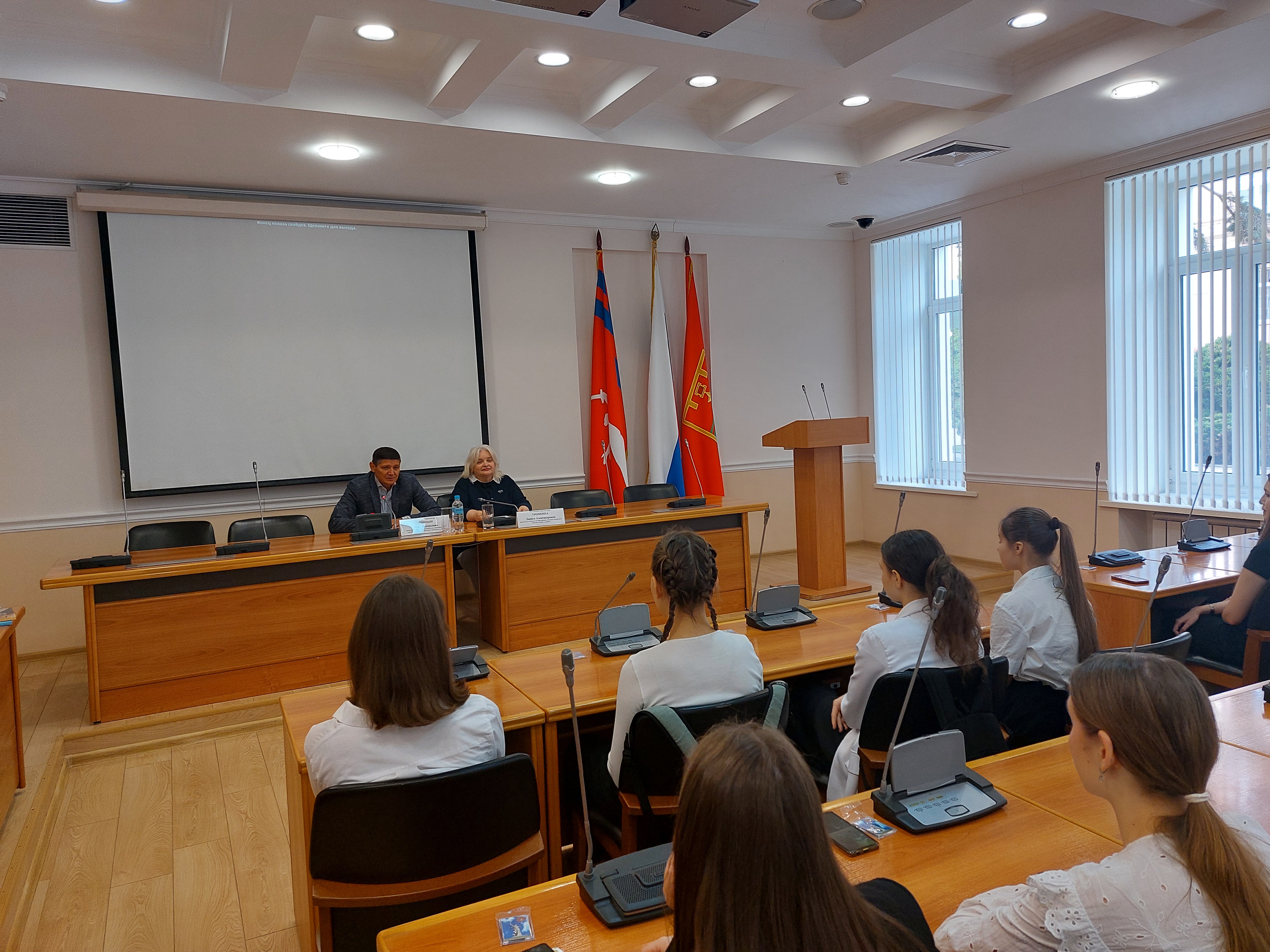 Школьники пообщались с представителями депутатского корпуса – председателем комитета по образованию, культуре, спорту, молодежной политике и туризму Ларисой Тропкиной и заместителем председателя комитета по муниципальному имуществу, землепользованию и градостроительству, депутатом по Кировскому району Олегом Спицыным.