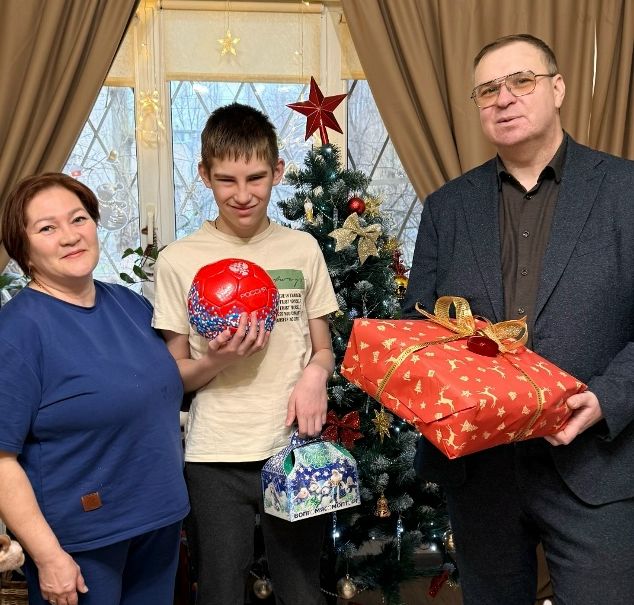 Узнав, что Тимур очень любит футбол, депутат также вручил ему футбольный мяч с российской символикой.