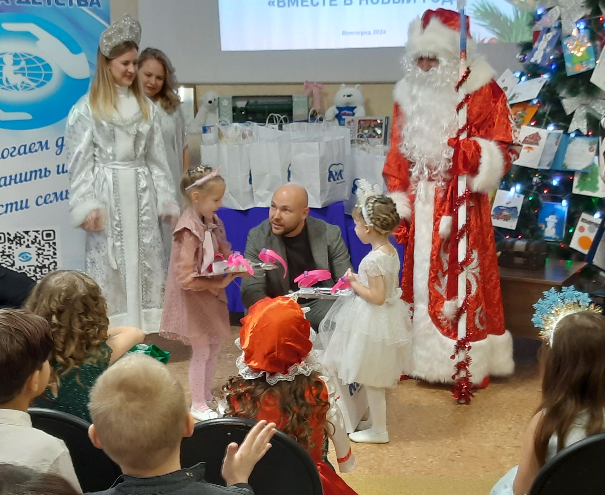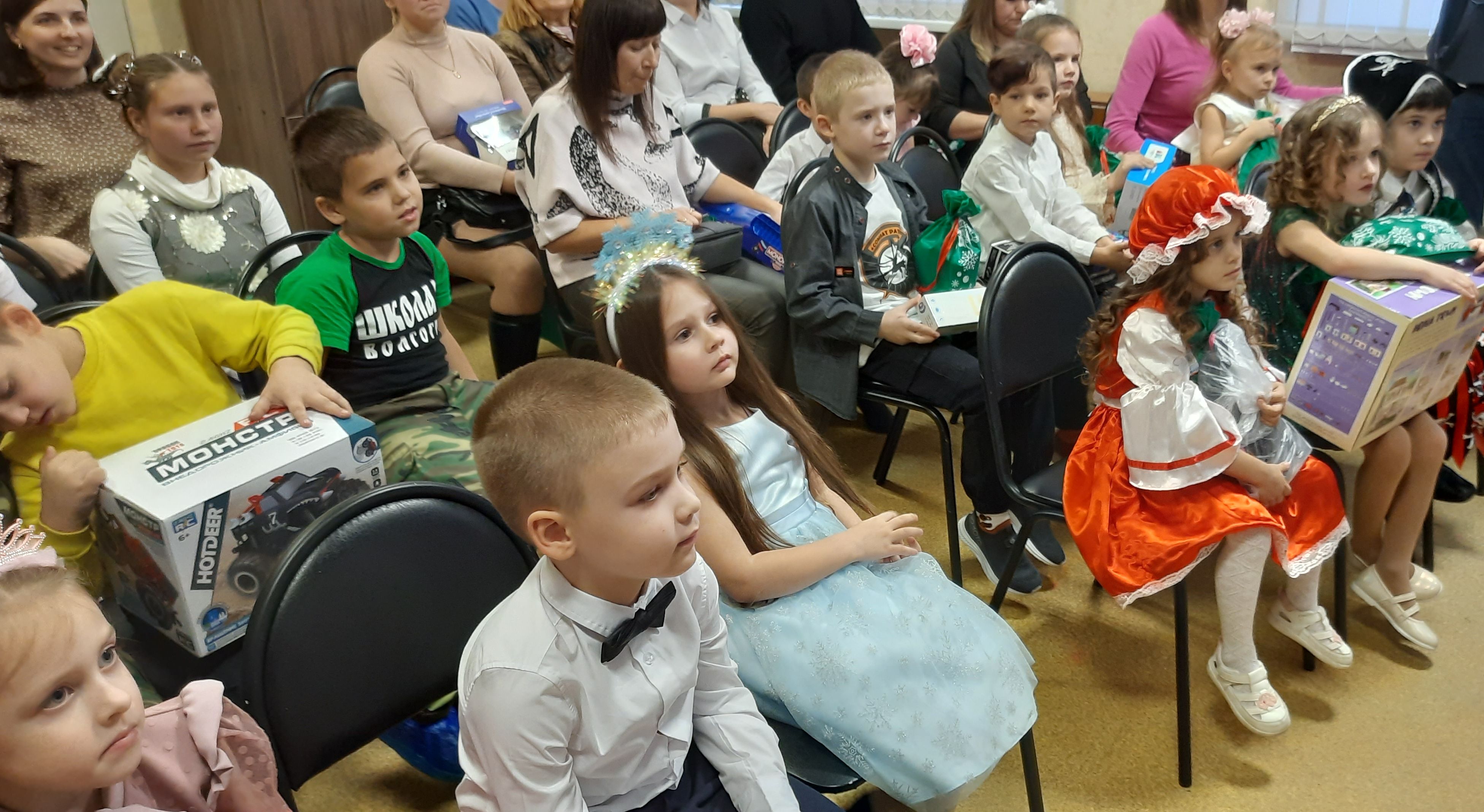 В этот раз, как и в предыдущие годы, вместе с Дедом Морозом, Снегурочкой и другими сказочными персонажами малыши участвовали в представлении, после чего подходили к елке и получали свой заветный подарок. Конструкторы и машинки, рюкзаки и мягкие игрушки – это именно то, о чем они так мечтали!