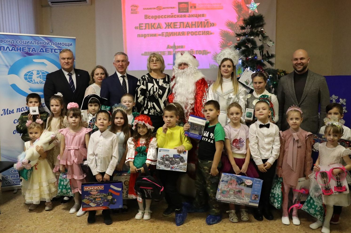Коньки, мягкие игрушки, рюкзаки, смарт-часы, конструкторы и множество других подарков получили воспитанники фонда социальной помощи «Планета детства». Исполнить мечты малышей, о которых они ранее писали Деду Морозу, помогли депутаты Волгоградской городской Думы от Краснооктябрьского района. В преддверии Нового года они выступили в качестве помощников главных сказочных персонажей на «Елке желаний».