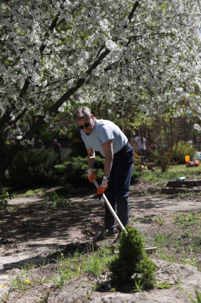 В течение нескольких часов совместными усилиями территория была облагорожена – убрана прошлогодняя листва и обрезаны сухие ветки на кустарниках, покрашены бордюры, ограждения и лестницы, почишены асфальтированные дорожки. Собрано и вывезено около 60 мешков мусора.