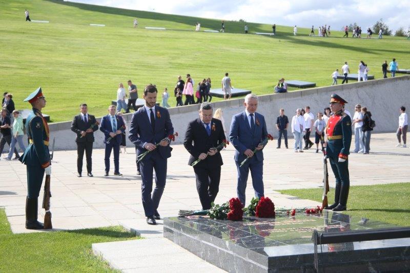 Перед открытием знака участники возложили цветы к Вечному огню в Зале Воинской славы, к могиле Маршала Советского Союза Василия Чуйкова и Братской могиле защитников Сталинграда.