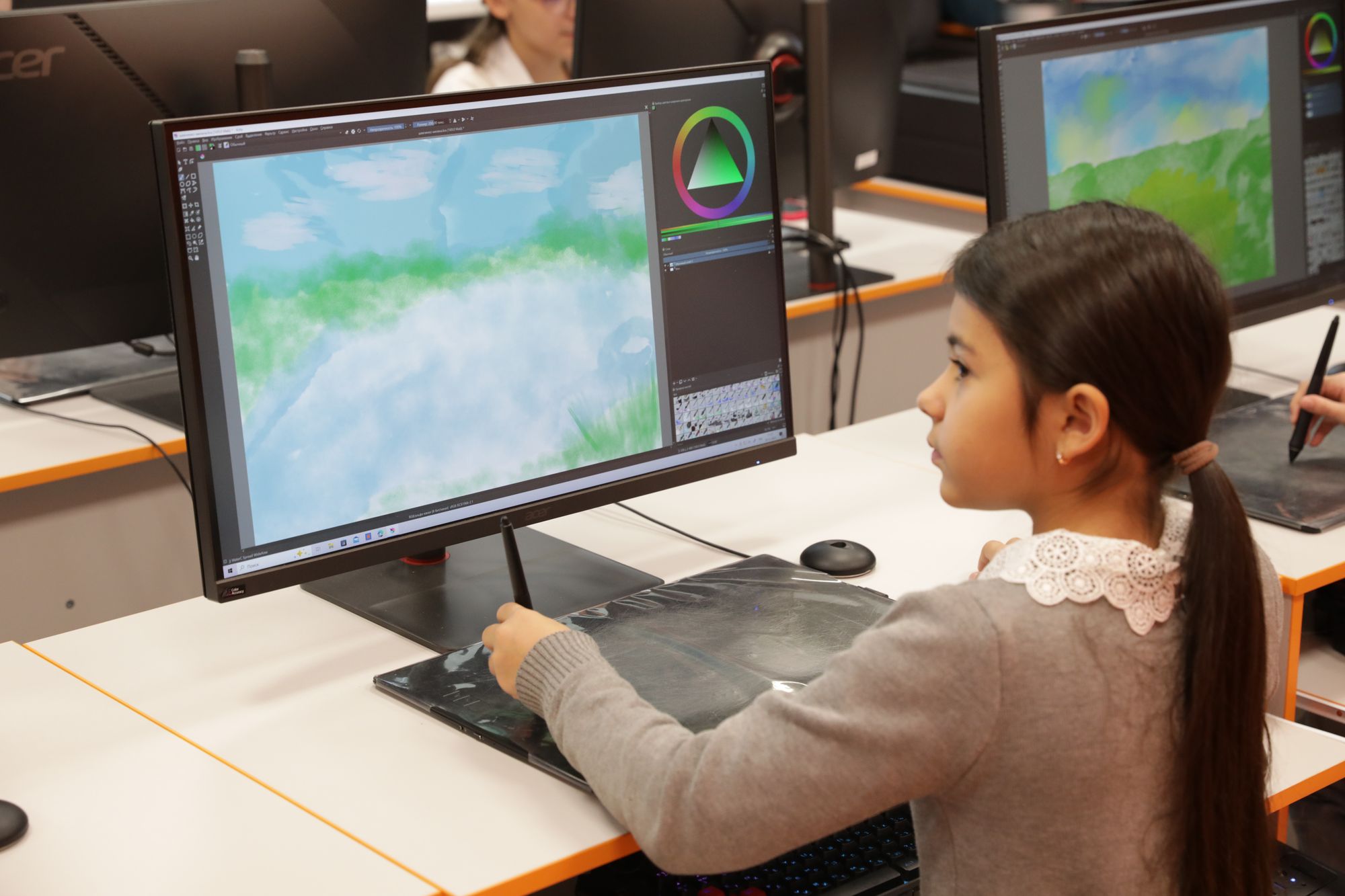 - Очень активно развиваются креативные индустрии и в городе, и в нашей стране, и всё этому сегодня способствует, - говорит руководитель школы креативных индустрий Ирина Быцуля. - Поэтому очень много у нас сейчас появляется художников и аниматоров, то есть, те профессии, на которых практически ещё нигде не обучают. И наша школа креативных индустрий — это первый шаг у подростков, когда они могут работать на таком профессиональном оборудовании, сделать себе портфолио.