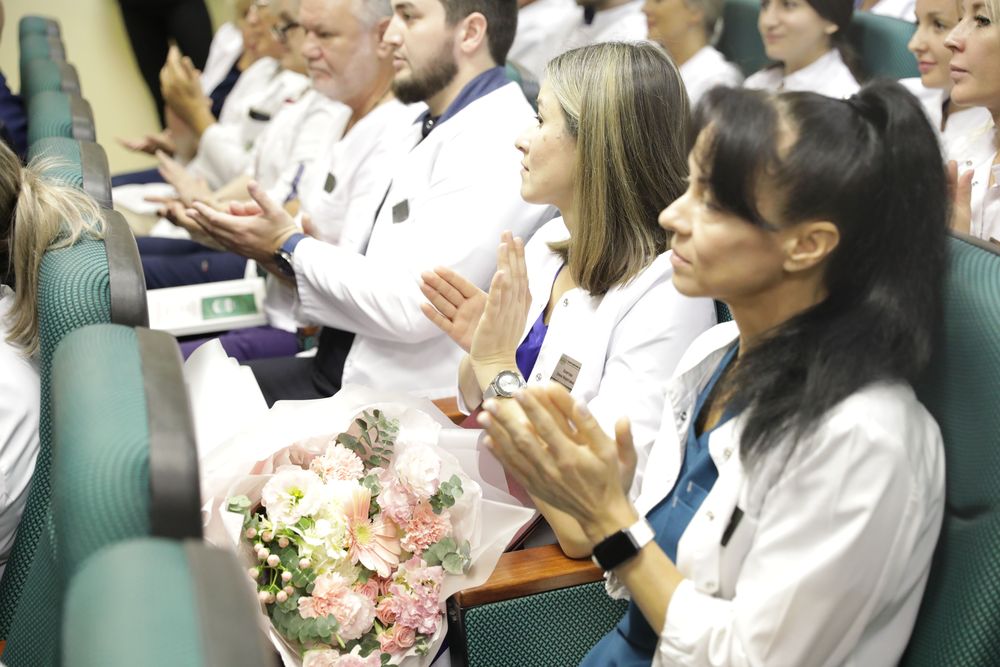 - Дорогие наши герои в белых халатах! Спасибо вам за самоотверженную работу, высокое мастерство и преданность призванию. Пусть благодарность пациентов согревает ваши сердца, а гордость за дело всей жизни придаёт новых сил! И пусть следующие 120 лет ваша история пишется теми же чернилами — профессионализмом, смелостью, мудростью и бесконечной любовью к людям! – пожелал Владлен Колесников.