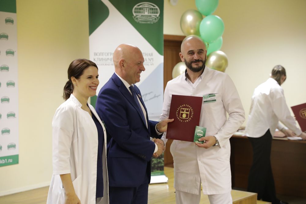Первый вице-спикер Дмитрий Дильман вручил лучшим сотрудникам ВОКБ-1 Почетные грамоты Волгоградской городской Думы. Он подчеркнул, что коллективу удается успешно сочетать лучшие традиции отечественной медицины с современным подходом к лечению пациентов. Благодаря этому облбольница остается центром качественной медицинской помощи для десятков тысяч наших земляков.
