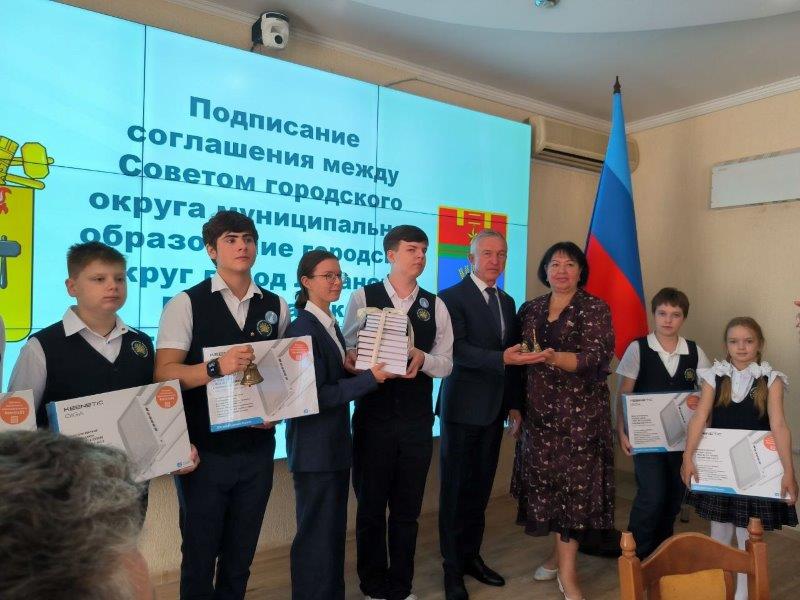 Волгоградцы передали в дар гимназии роутеры. Техника, приобретенная депутатами Волгоградской городской Думы, станет хорошим подспорьем в начале нового учебного года и поможет педагогам и детям использовать в образовательном процессе современные технологии. Кроме этого, депутаты передали школьной библиотеке подборку книг знаменитого волгоградского писателя Бориса Екимова. А также сделали еще один символический подарок.