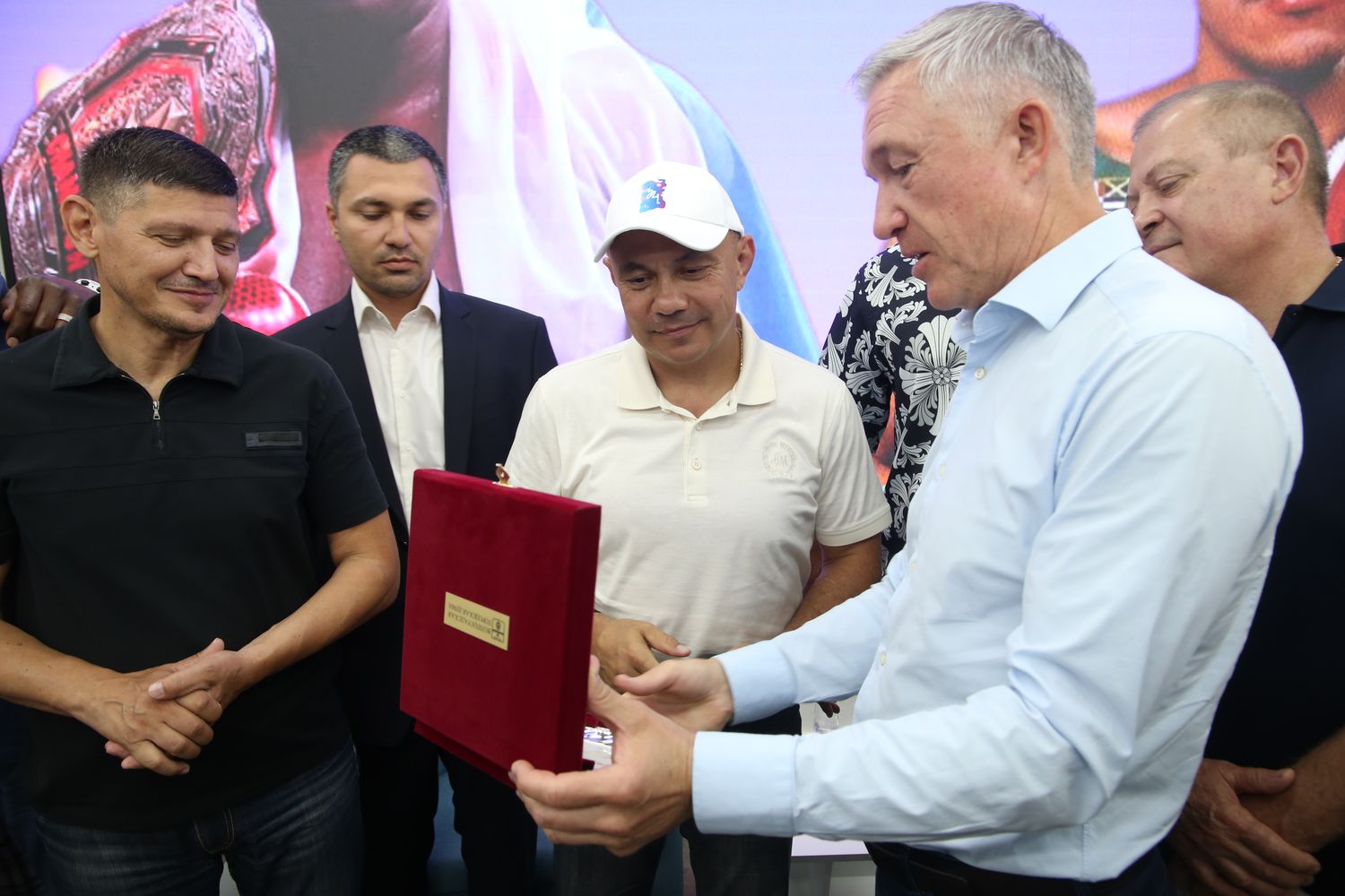 Владлен Колесников вручил Константину Цзю и Кевину Джонсону памятные подарки с символикой города-героя Волгограда.
