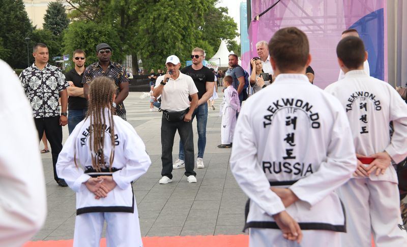 Знаменитые гости побывали на спортивных площадках фестиваля. Тхэквондисты, борцы, боксёры, каратисты, самбисты – юные воспитанники спортшкол Волгограда хотели пообщаться и сфотографироваться с живой легендой. Константин Цзю не отказал никому, а затем сказал напутственное слово, которое важно было услышать всем спортсменам, независимо от вида спорта: