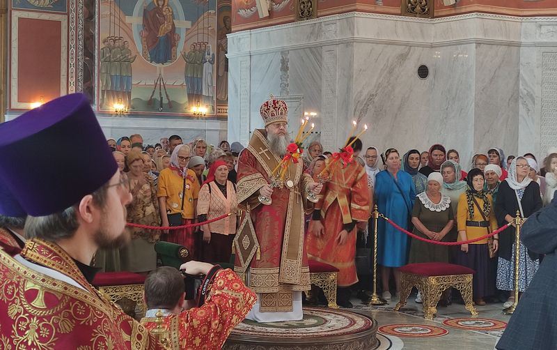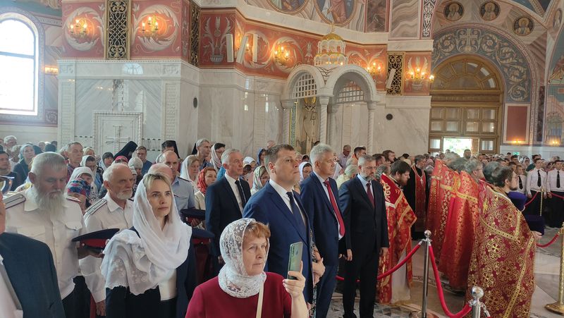 Божественную литургию совершили митрополит Волгоградский и Камышинский Феодор, митрополит Ростовский и Новочеркасский Меркурий, архиепископ Махачкалинский и Грозненский Варлаам, архиепископ Элистинский и Калмыцкий Юстиниан, епископ Урюпинский и Новоаннинский Елисей, епископ Калачевский и Палласовский Иоанн. После богослужения состоялся праздничный Крестный ход.
