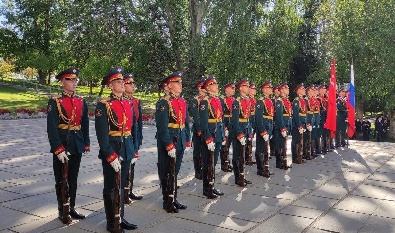 Венки и живые цветы возложили сегодня утром волгоградцы к Вечному огню в Пантеоне Славы, к могиле Маршала Василия Чуйкова, к братской могиле советских воинов – празднование Дня Победы в городе-герое Волгограде традиционно началось с торжественной церемонии на Мамаевом кургане.
