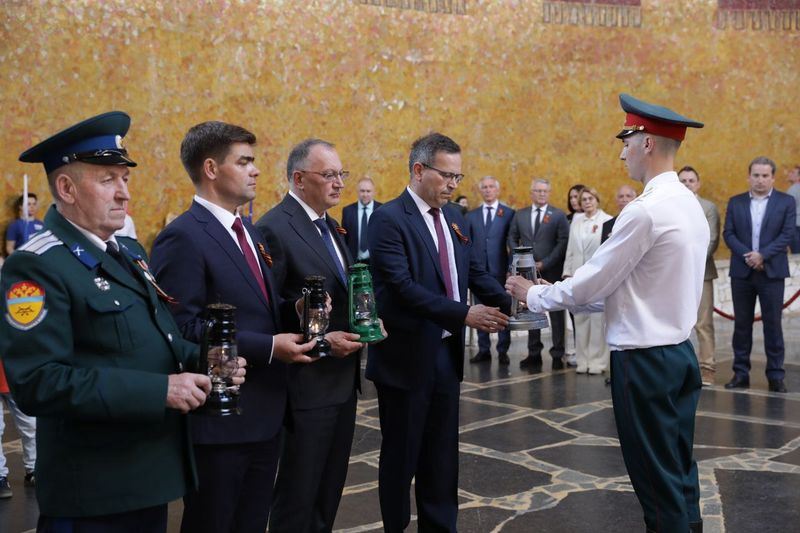 Лампаду с частицей Вечного огня в торжественной обстановке зажгли в Зале Воинской Славы.