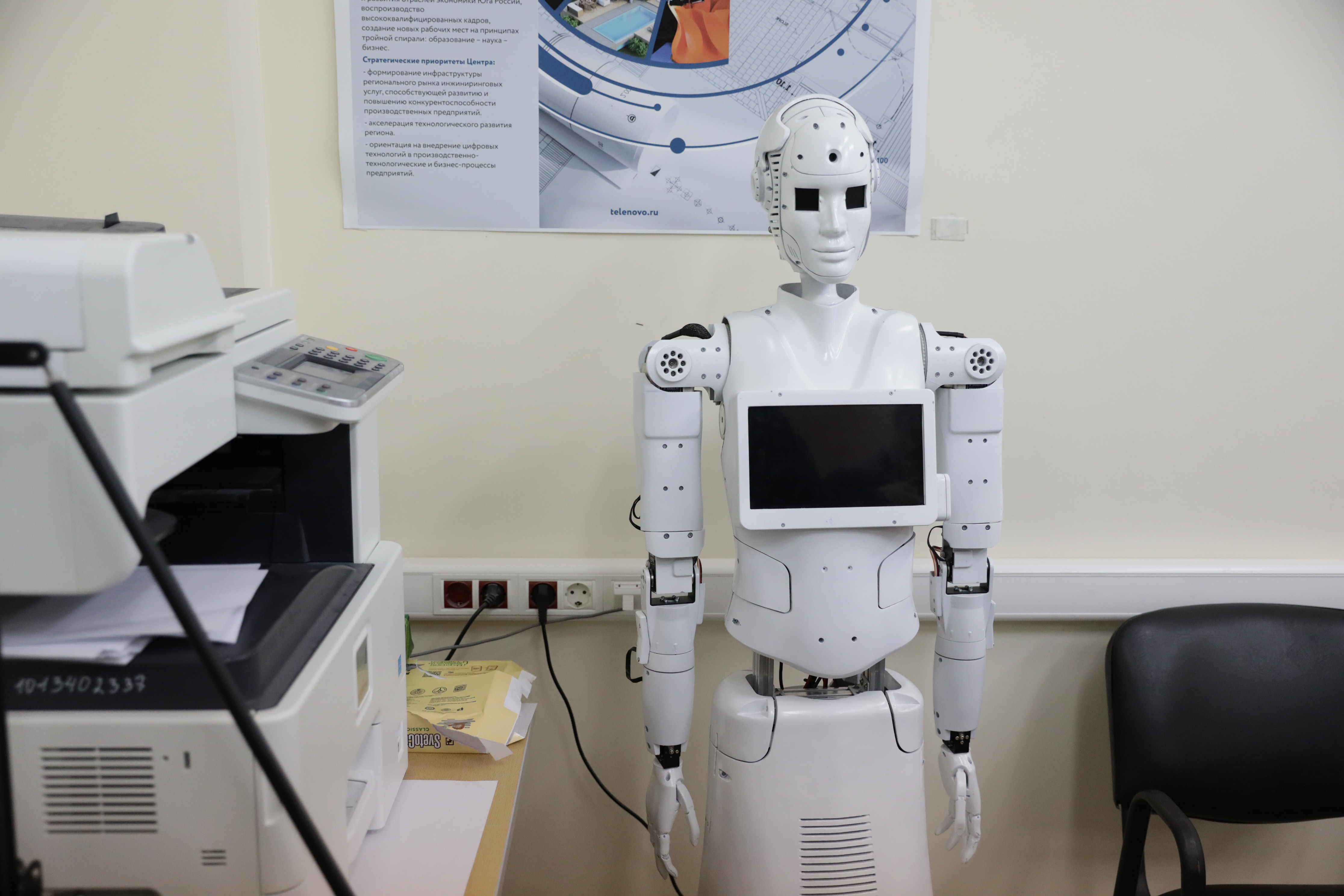 В завершение участники круглого стола посетили лаборатории инженирингового центра, познакомились с разработками молодых ученых, пообщались с роботом Гошей и наметили дальнейшие перспективы сотрудничества.