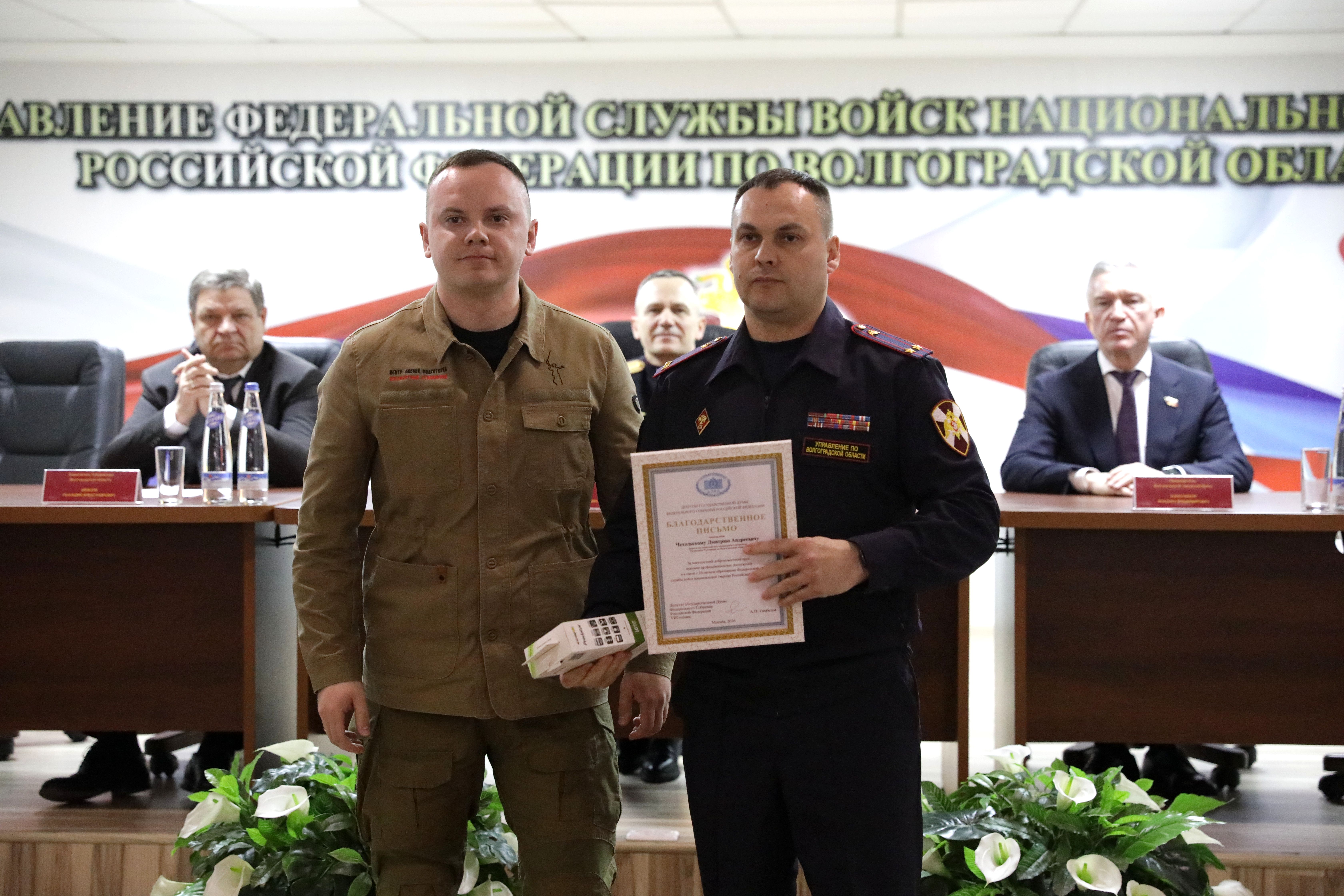 За образцовое исполнение служебных обязанностей и высокий профессионализм сотрудникам регионального Управления Росгвардии вручены Почетные грамоты и Благодарственные письма от различных структур и ведомств региона, в том числе от Волгоградской городской Думы и главы города.