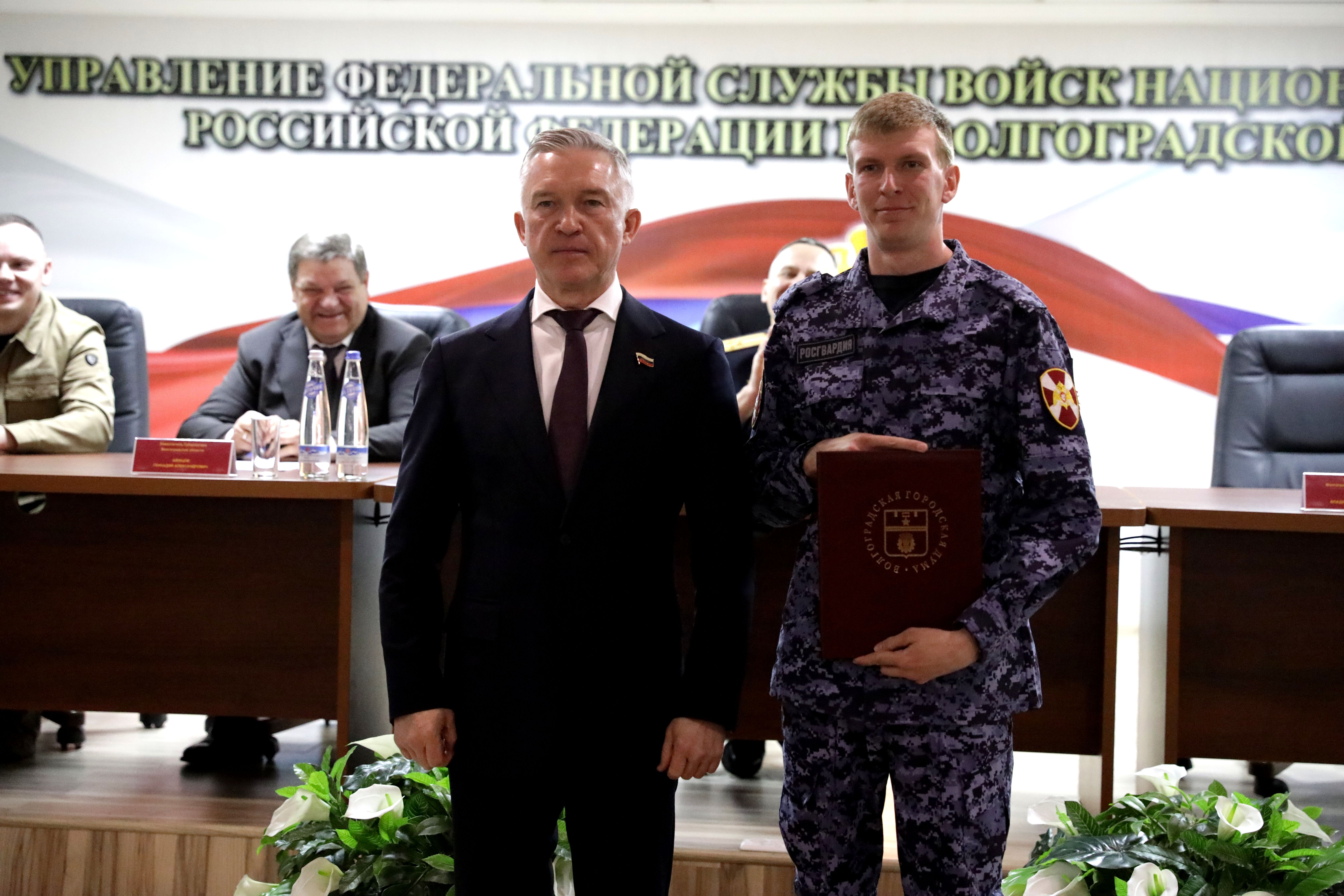 Сегодня свой профессиональный праздник отмечают сотрудники Росгвардии. Накануне знаменательной даты, в преддверии 10-й годовщины образования Росгвардии РФ, в Волгограде состоялась торжественная церемония награждения лучших сотрудников регионального Управления ведомства. От имени депутатского корпуса с профессиональным праздником росгвардейцев поздравили председатель гордумы Владлен Колесников и депутат, руководитель Центра боевой подготовки «Бессмертный Сталинград» Михаил Харитонин.