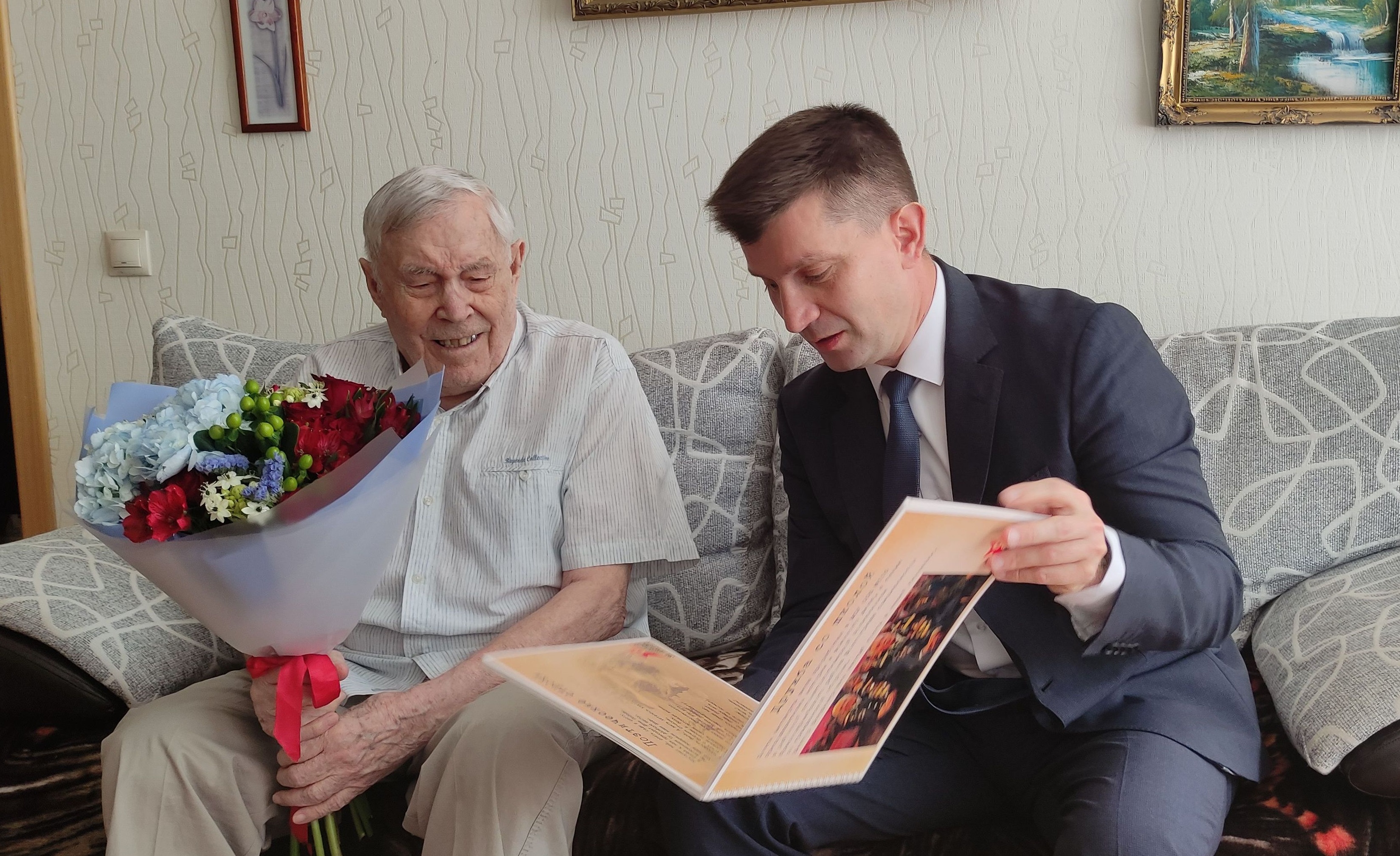 От депутатского корпуса Волгоградской городской Думы ветерана Великой Отечественной войны с днем рождения поздравил заместитель председателя Волгоградской городской Думы Геннадий Кузнецов.