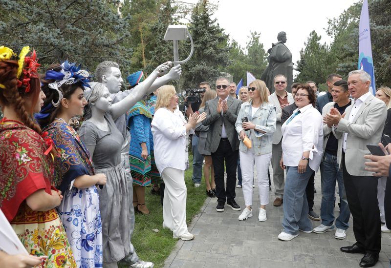 Следующей посещенной депутатами локацией стала площадка «Арт-пространство» у фонтана «Искусство». Там представлены работы воспитанников учреждений дополнительного образования. В их числе – прославленная волгоградская школа искусств «Воскресение». «Это образовательное учреждение давно снискало заслуженную популярность у волгоградцев, - говорит первый зампред гордумы Дмитрий Дильман. – Здесь воспитывают в наших детях уважение к российской культуре и ее лучшим традициям. Очень горжусь, что школа находится в Кировском районе, который я представляю в гордуме».