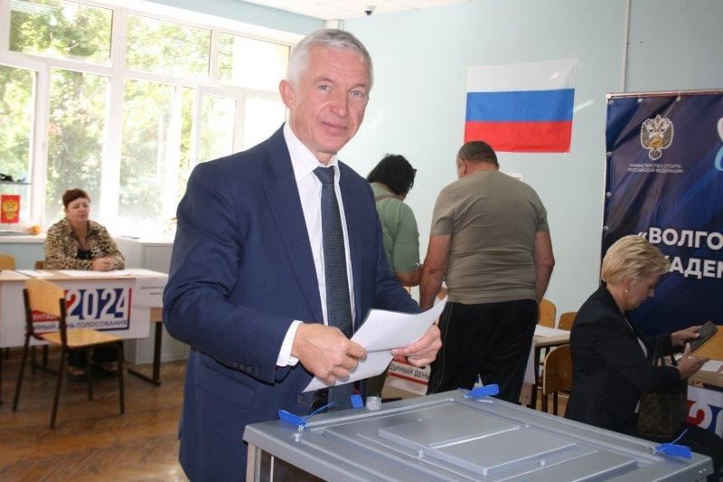 Председатель Волгоградской городской Думы Владлен Колесников по традиции проголосовал вместе с семьей – супругой и сыном. Его избирательный участок - в Волгоградской академии физической культуры.