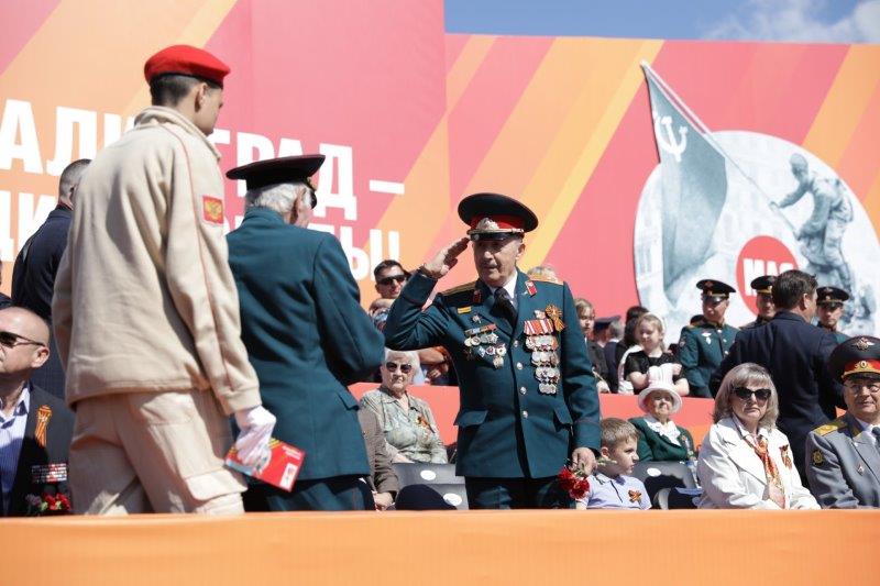 Торжественным маршем по площади Павших Борцов прошли военнослужащие Волгоградского гарнизона, сотрудники силовых и специальных ведомств, курсанты, кадеты и юнармейцы.
