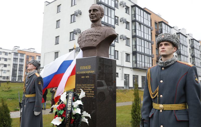 Памятник участнику Сталинградской битвы Иссе Плиеву был открыт накануне в Советском районе Волгограда на улице, носящей имя этого прославленного военачальника.