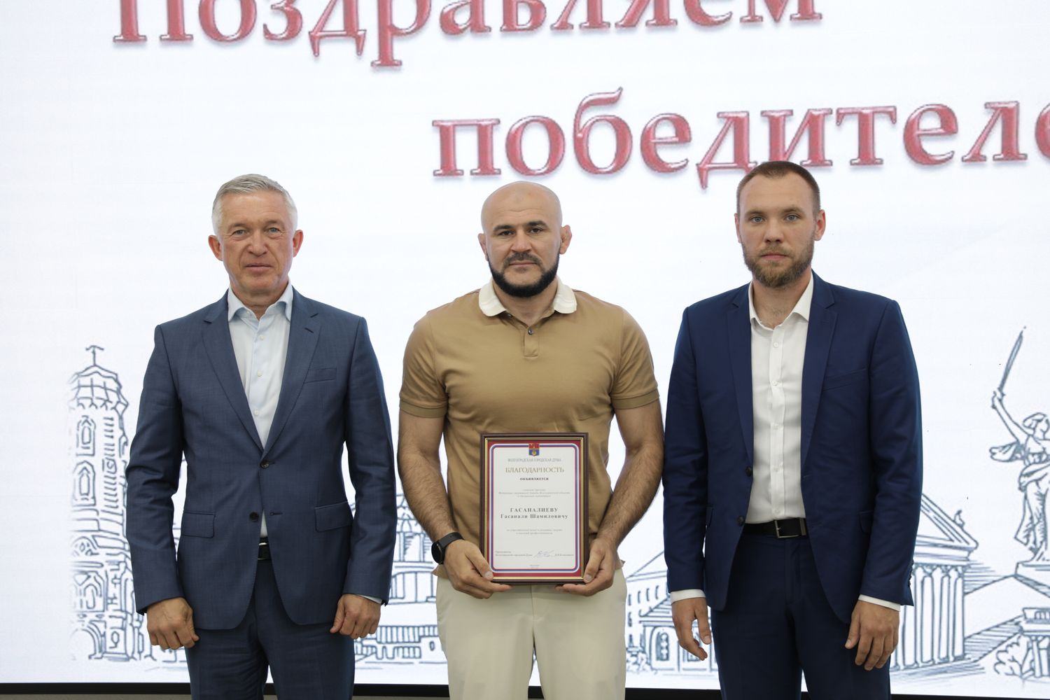 Благодарностями Волгоградской городской Думы и памятными подарками за целеустремленность и высокие спортивные результаты на соревнованиях, турнирах, первенствах и чемпионатах по спортивной борьбе в дисциплине панкратион награждены воспитанники спортивного клуба «Высшая лига»: Иван Пурисов, Оксана Бирюкова, Аъзам Чоршанбиев; воспитанники спортивного клуба «Самбо 34»: Виктория Дудакова, Магомед Махамаев, Заур Абдулаев, воспитанник учреждения дополнительного образования «Быковский Дом творчества» Семён Голованов.