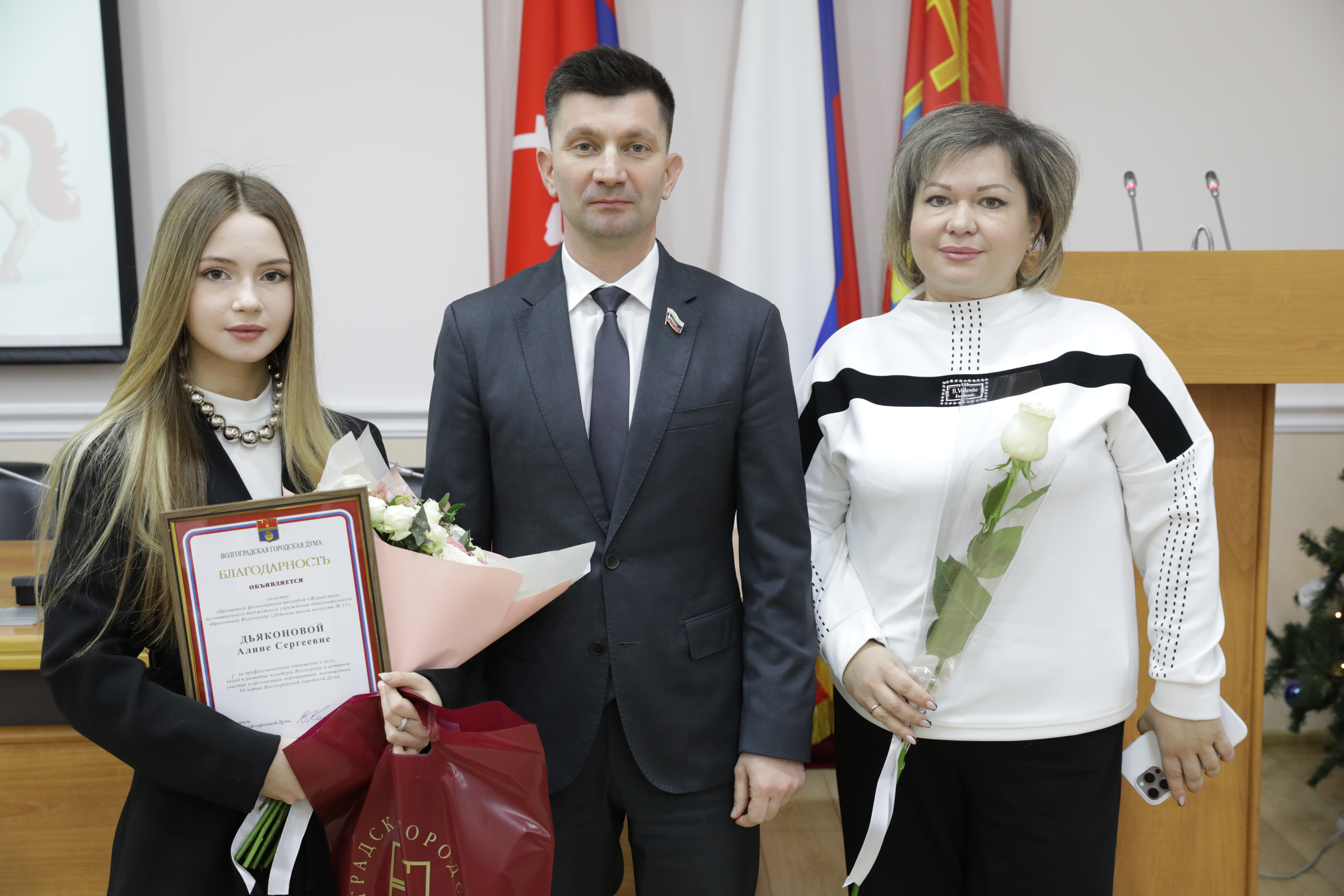 - От имени депутатского корпуса хочу выразить признательность ребятам, их мудрым наставникам и заботливым родителям за подлинный патриотизм, за искреннюю любовь к нашему легендарному городу, за стремление приумножать его культурное наследие. В преддверии новогодних праздников желаю вам неиссякаемой энергии, новых творческих свершений и громких побед. Пусть ваш талант и впредь служит во славу родного Волгограда! – сказал Владлен Колесников.