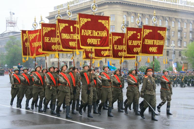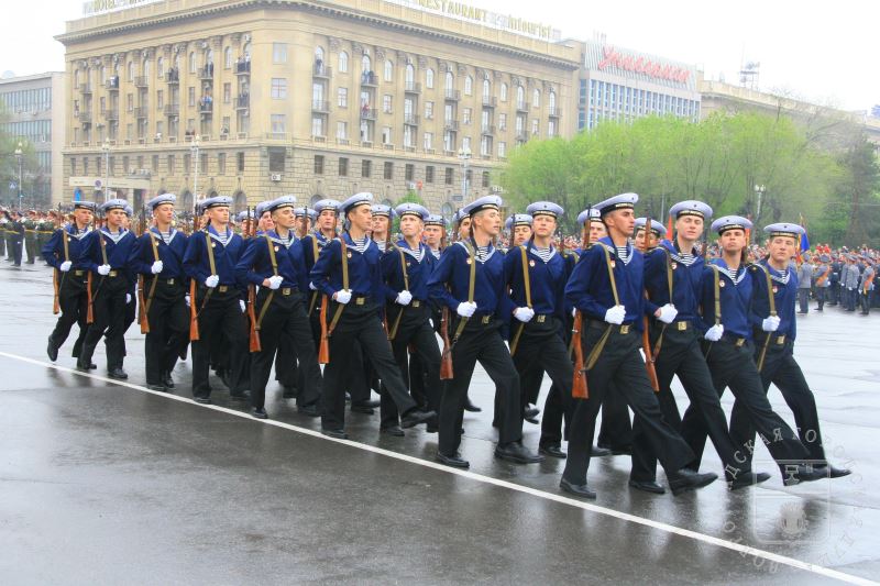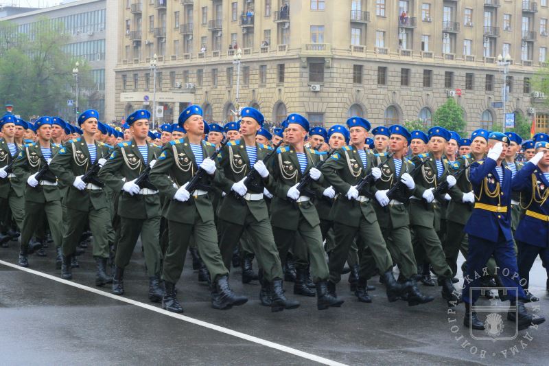 Военный парад войск Волгоградского гарнизона на площади Павших борцов в рамках празднования Дня Победы