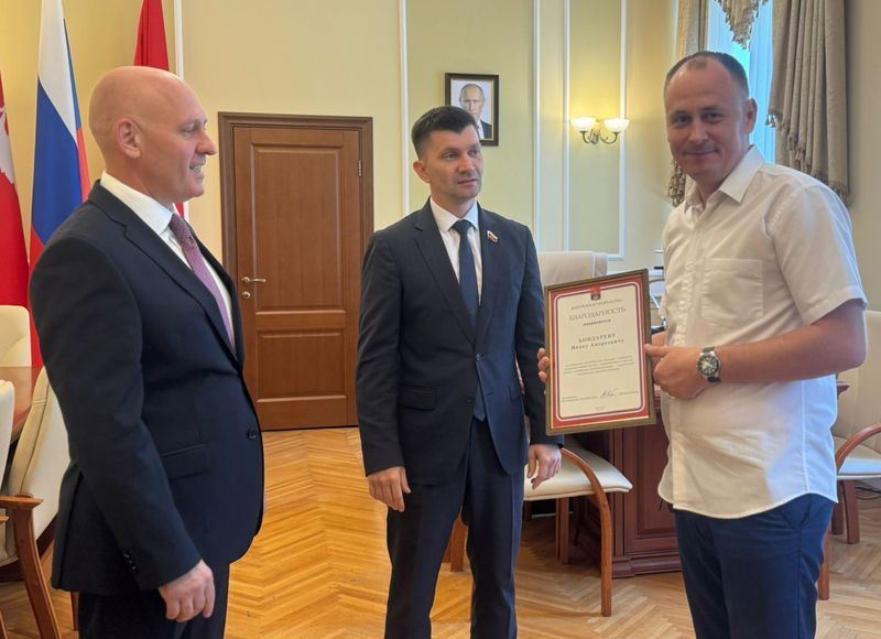 Дмитрий Дильман и Геннадий Кузнецов от лица всего депутатского корпуса гордумы поблагодарили активного волгоградца за неравнодушие и патриотическую позицию.