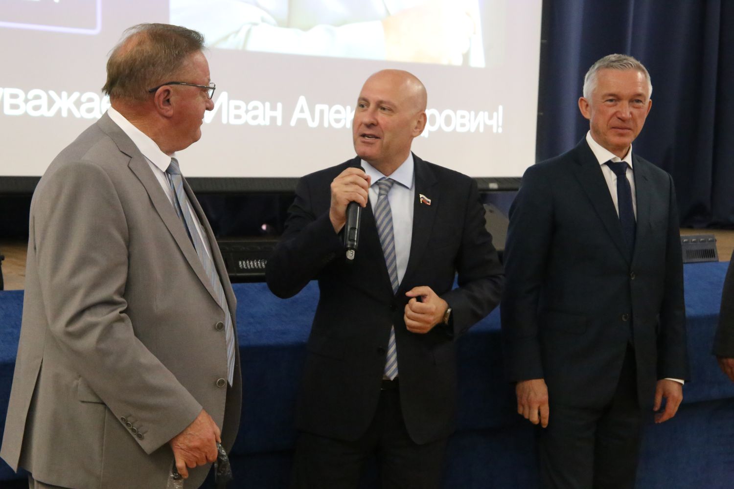 - Уверен, что выдающийся талант учёного, организатора, а также ваша активная общественная позиция еще многие годы будут служить на благо родного вуза, региона и России в целом! – обратился к имениннику Владлен Колесников. - От лица депутатского корпуса желаю вам крепкого здоровья, энергии и реализации всех намеченных планов!