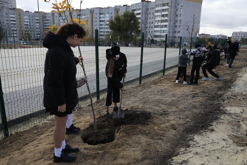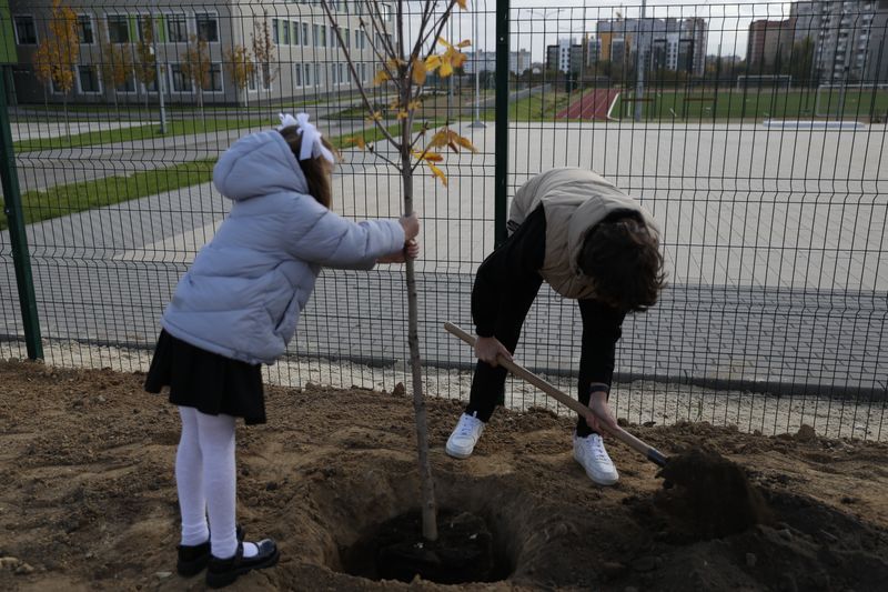 Почетное право открыть стелу было предоставлено кадетам школы №7. После этого учащиеся вместе с гостями и педагогами приняли участие в высадке аллеи на территории школы саженцев молодых каштанов.