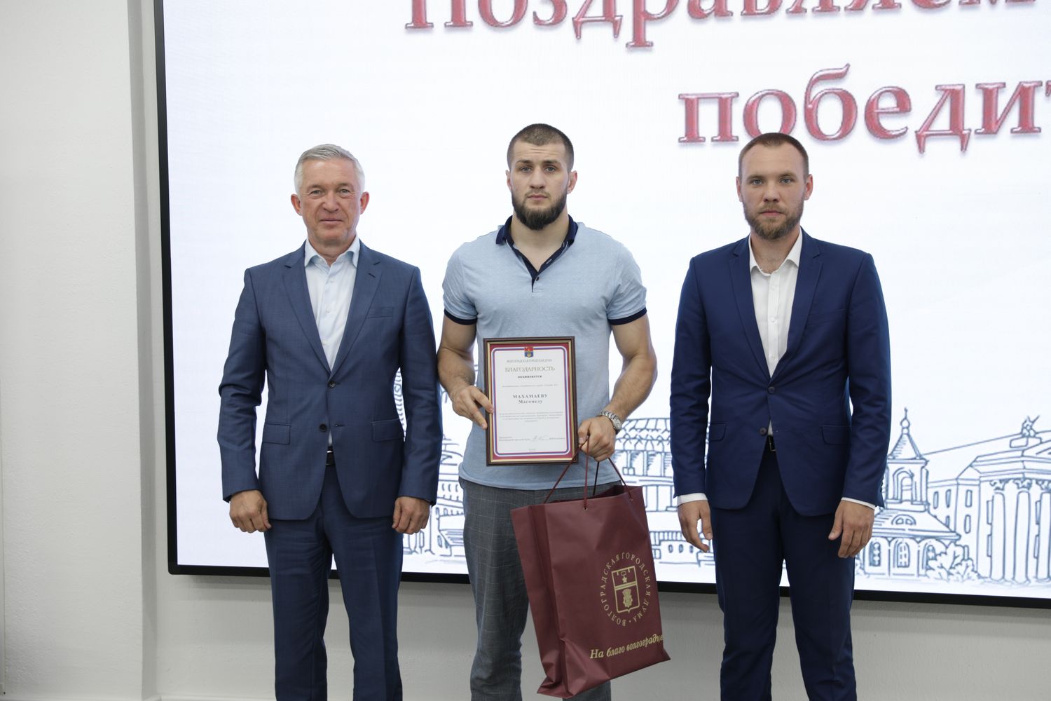 Благодарностями Волгоградской городской Думы и памятными подарками за целеустремленность и высокие спортивные результаты на соревнованиях, турнирах, первенствах и чемпионатах по спортивной борьбе в дисциплине панкратион награждены воспитанники спортивного клуба «Высшая лига»: Иван Пурисов, Оксана Бирюкова, Аъзам Чоршанбиев; воспитанники спортивного клуба «Самбо 34»: Виктория Дудакова, Магомед Махамаев, Заур Абдулаев, воспитанник учреждения дополнительного образования «Быковский Дом творчества» Семён Голованов.
