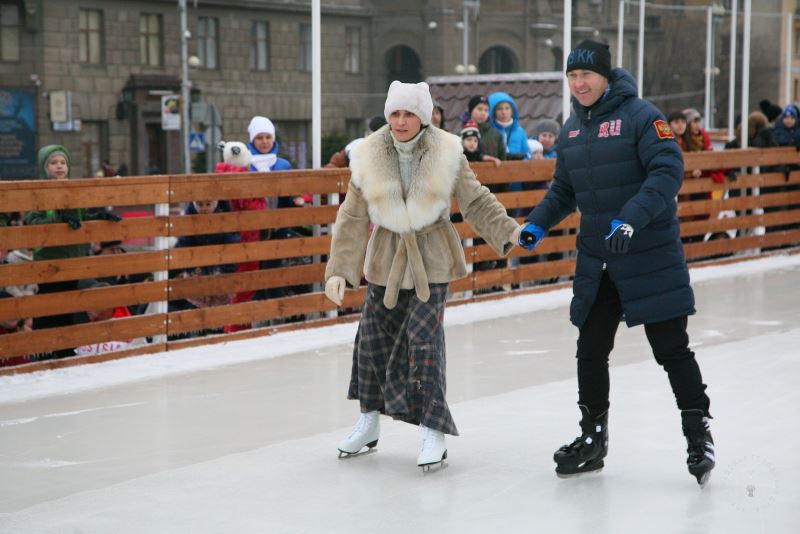 Торжественное открытие ледового катка под открытым небом в Центральном районе Волгограда