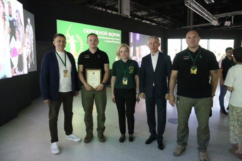 Награждение состоялось в рамках прошедшего в Волгограде окружного форума Комитета семей воинов Отечества, в присутствии волгоградских участников СВО и руководителей штабов КСВО из регионов Южного федерального округа. От имени главы региона Благодарность вручил заместитель губернатора Геннадий Шевцов.