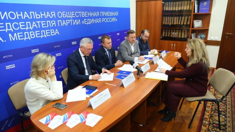 В Волгограде на площадке Региональной общественной приемной «Единой России» состоялся прием по вопросам предпринимательства и бизнеса. Его совместно провели член Генсовета «Единой России», президент «ОПОРЫ РОССИИ» Александр Калинин, руководитель Региональной общественной приемной Председателя партии «Единая Россия» Д.А. Медведева, председатель Волгоградской городской Думы Владлен Колесников, координатор партпроекта «Предпринимательство» в Волгоградской области, депутат гордумы Иосиф Ефремов, председатель реготделения «ОПОРЫ РОССИИ», депутат гордумы Андрей Удахин и уполномоченный по защите прав предпринимателей в регионе Ольга Устинова.