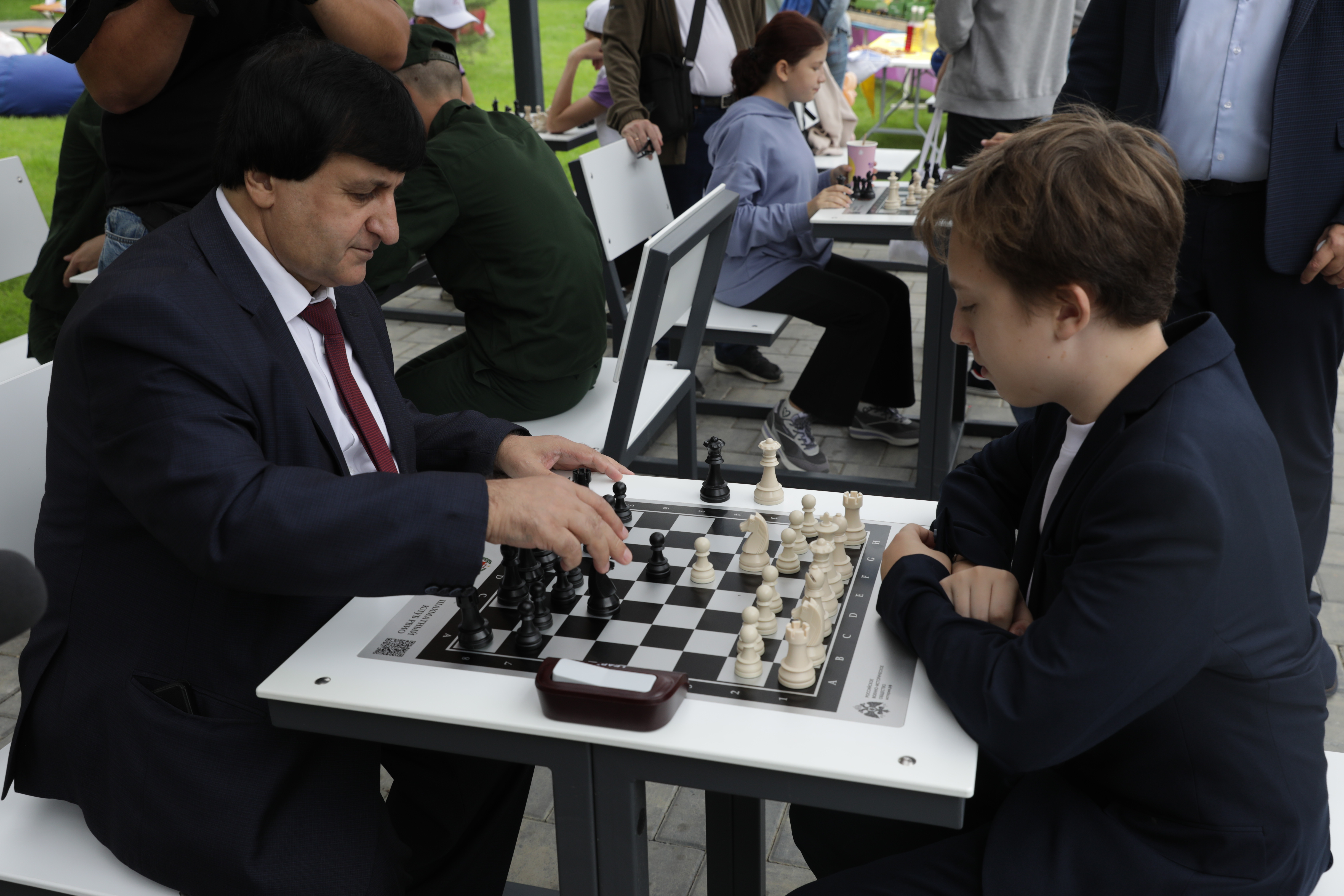 Ну а если пожелаешь сразиться в шахматы, то и здесь твое желание исполнится: шахматные столы с объемными фигурами уютно расположились под навесом. Депутат гордумы Илдырым Гасанов, возглавляющий муниципальную шахматную спортшколу №20, вместе со своими воспитанниками сыграли здесь не одну партию.