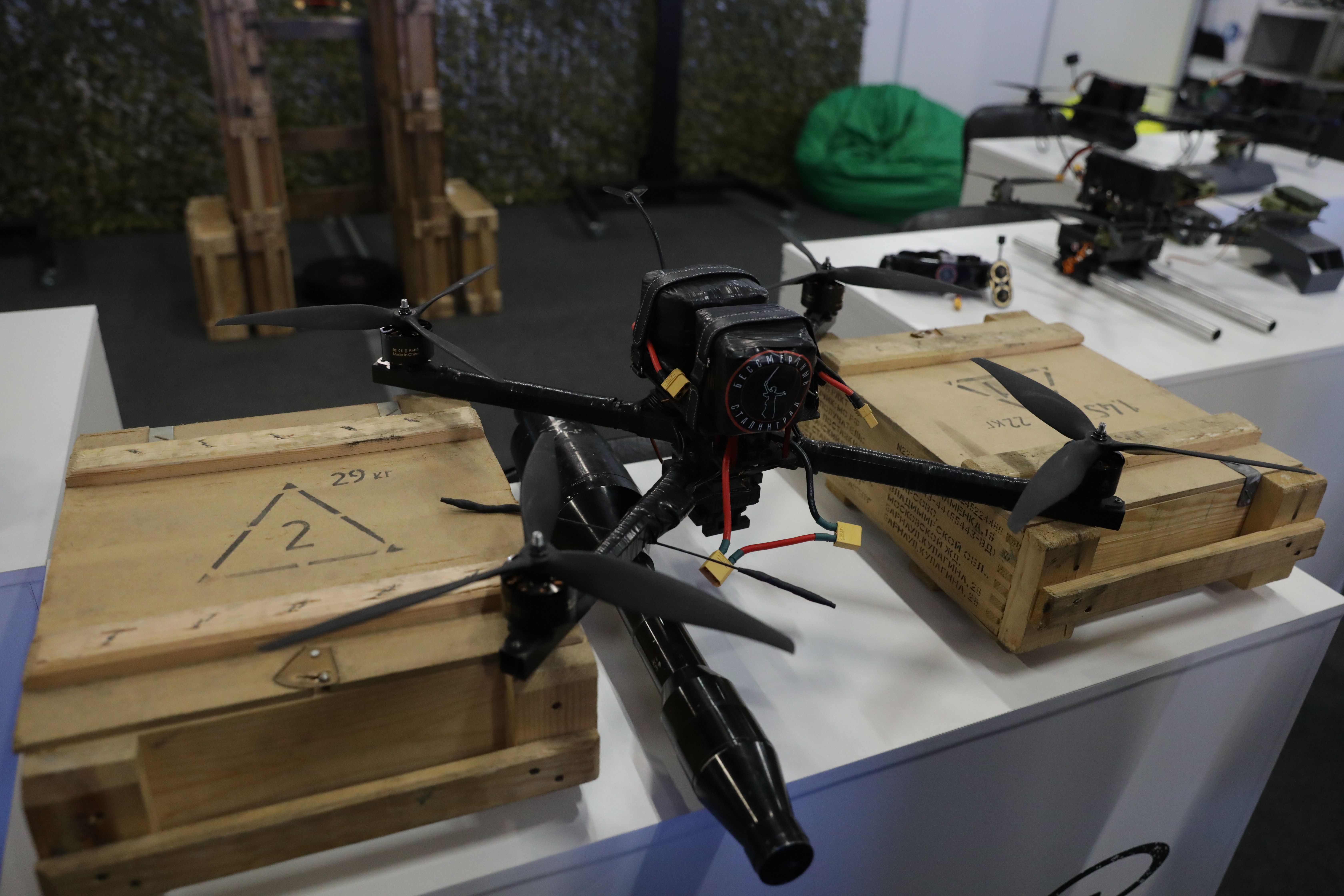 Стенд с новыми видами БПЛА и мототехникой, изготовленной в Волгоградской области, на выставочной площадке «Беспилотные авиационные системы» представляют совместно Центр боевой подготовки «Бессмертный Сталинград» и компания «Хобби 34». Посетителям выставки демонстрируются образцы восьми новейших беспилотников и два мощных электромотоцикла. О новинках рассказывает руководитель Центра, депутат Волгоградской городской Думы Михаил Харитонин.