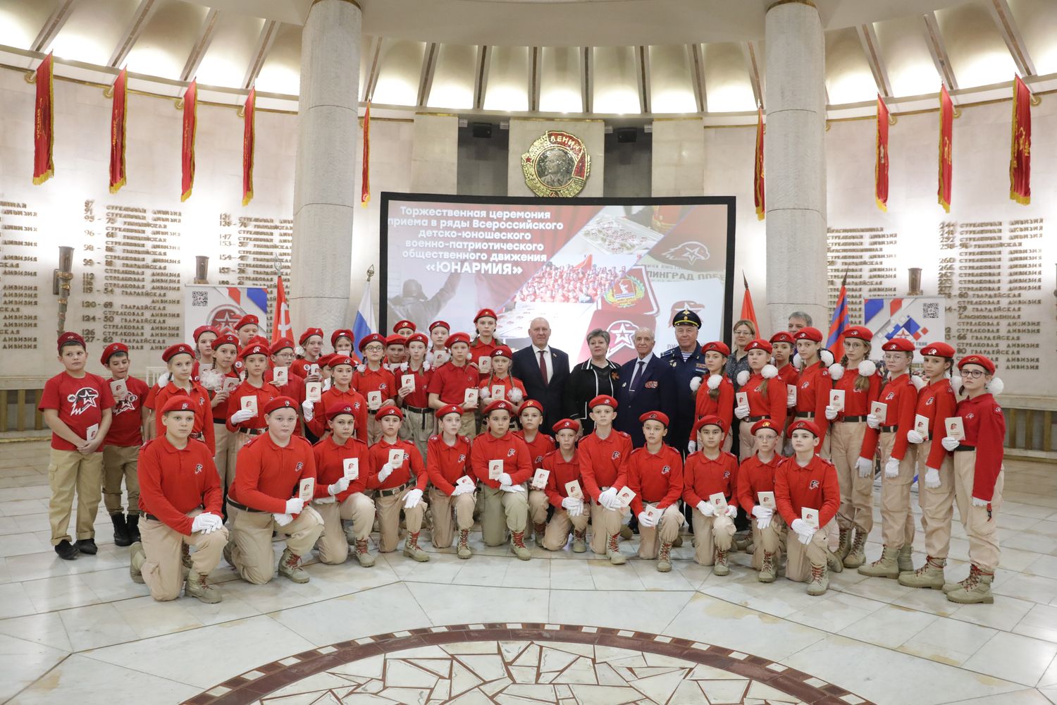 Сегодня в Триумфальном зале музея-панорамы «Сталинградская битва» состоялся торжественный прием в ряды юнармейцев. Ребят поздравили с этим событием представители регионального Штаба ЮНАРМИИ, председатель городского Совета ветеранов Александр Струков, первый заместитель председателя Волгоградской городской Думы Дмитрий Дильман.