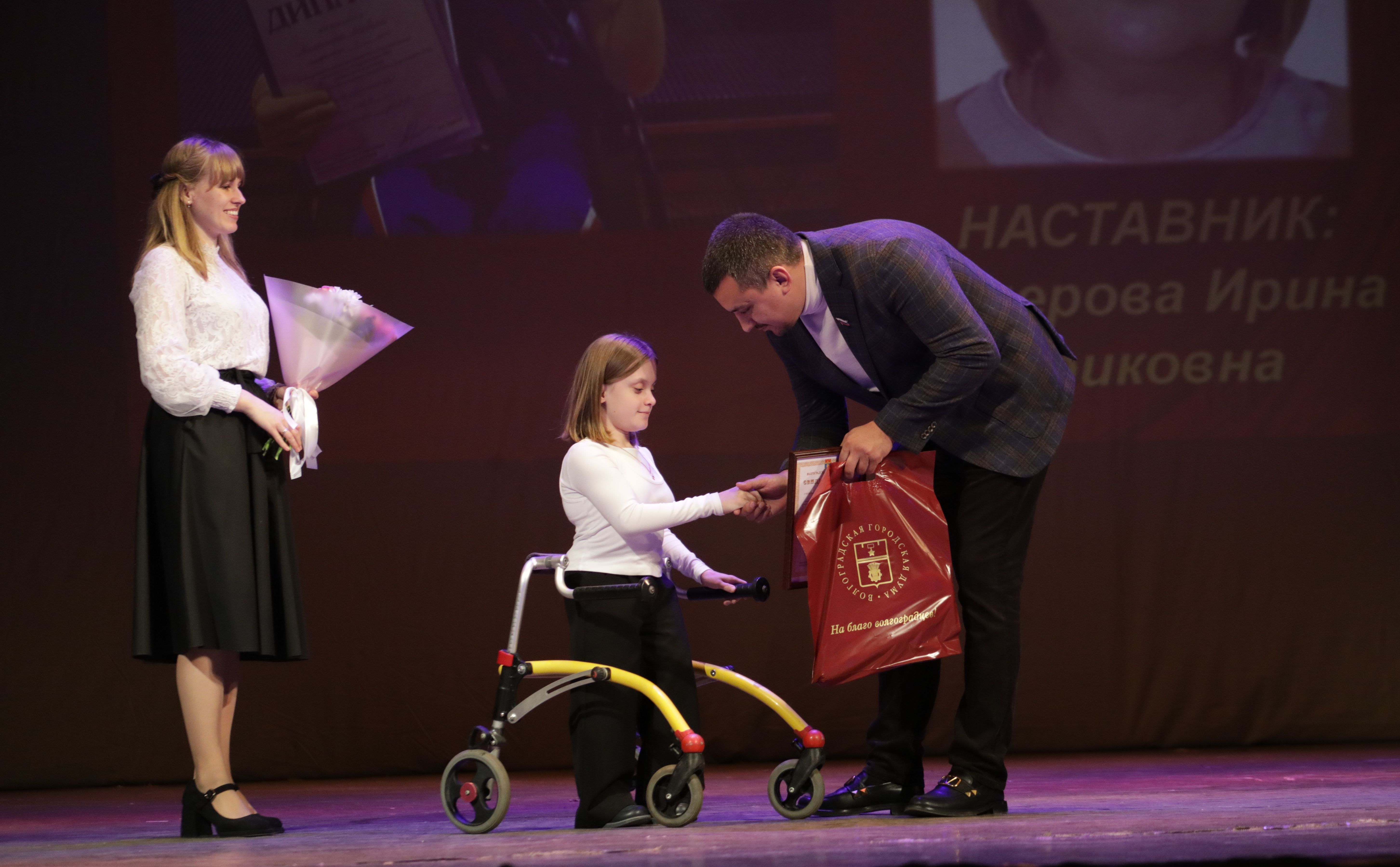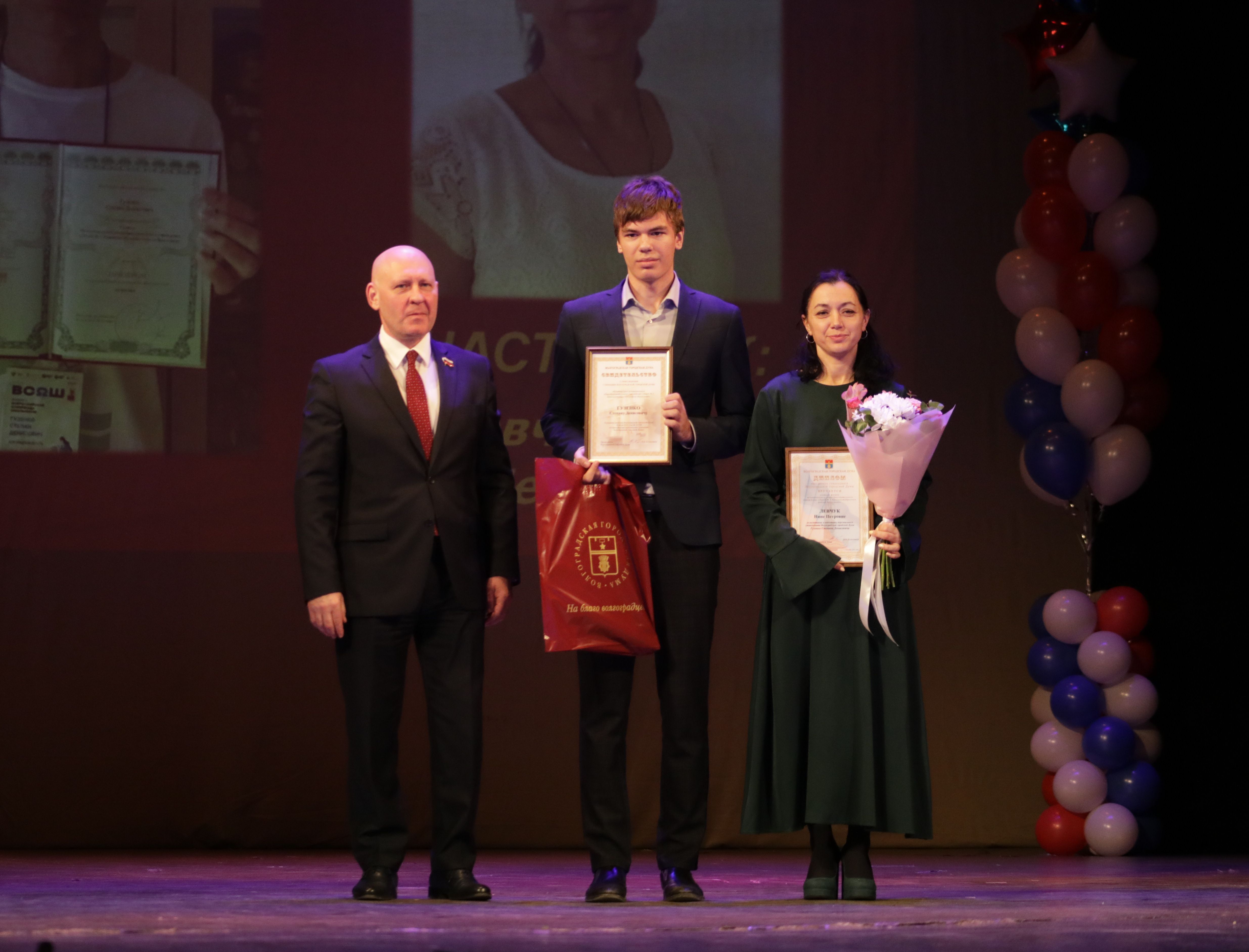 Сертификаты персональных стипендиатов Волгоградской городской Думы в области образования ребятам и их наставникам вручил первый заместитель председателя гордумы Дмитрий Дильман.